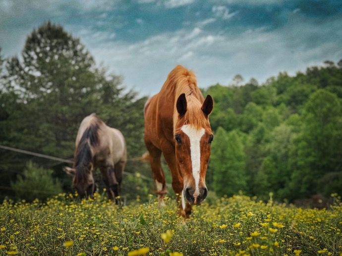 Now in his golden years, Bull enjoys a peaceful life alongside his best buddy, Onza. He spends his days wandering the pastures, curiously observing the world around him, always hopeful for a treat or a gentle scratch from a kind visitor.