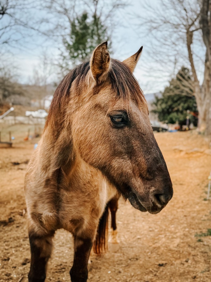 Bull is a senior Quarter Horse who made his way to Caspian’s Heritage after years of barrel racing in Texas. Though his past was marked by a heavy hand and demanding expectations, Bull’s spirit remains unbroken.