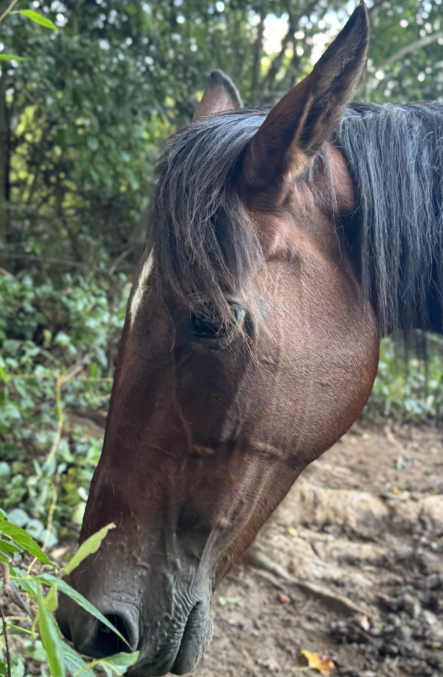 But here, at last, she has the freedom to exhale—literally and figuratively. She grazes gently in the breeze and watches the world with wise, wary eyes. Though she loves people deeply, her conditions mean she must be appreciated at a respectful distance. She adores quiet companionship: someone sitting nearby, speaking softly, or offering a special treat. She finds peace in presence.